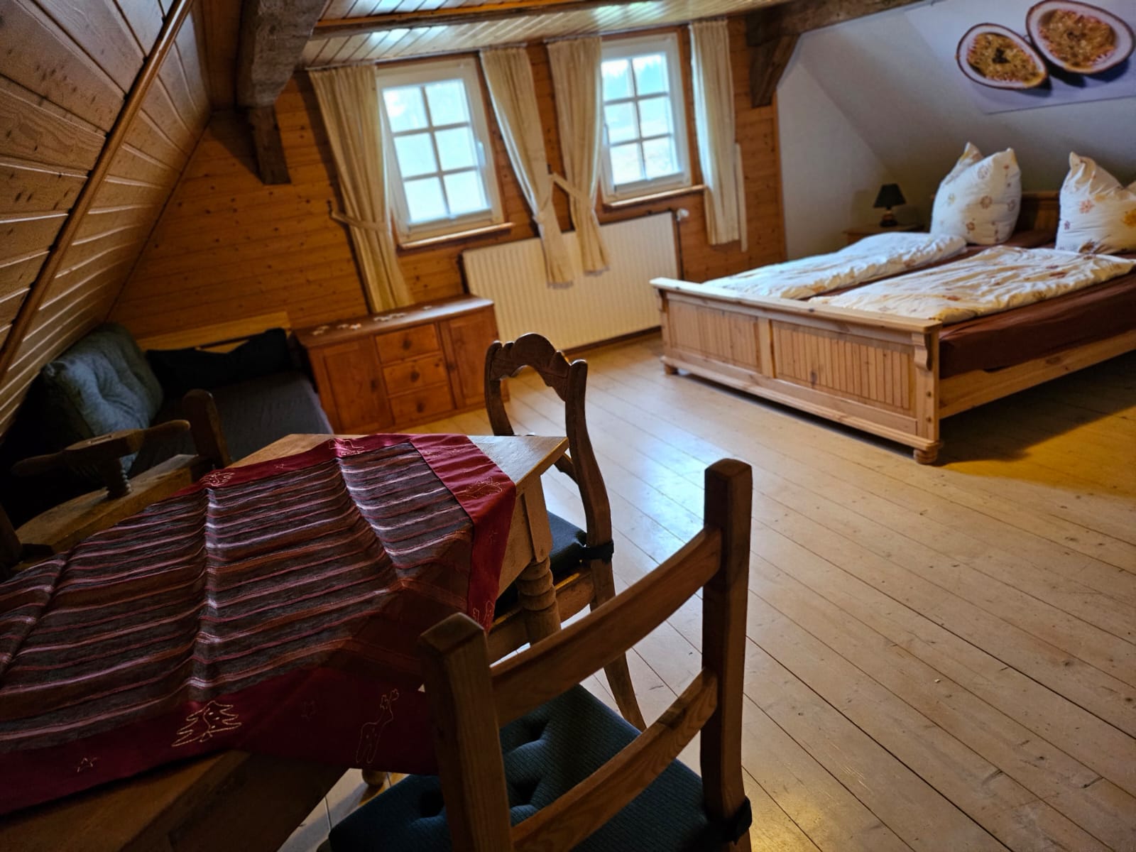 der drei Schlafzimmer hat seine individuelle Note. Bäuerlich