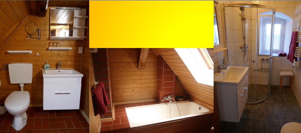 Im Erdgeschoss mit Dusche im ersten Stock mit Badewanne, muss